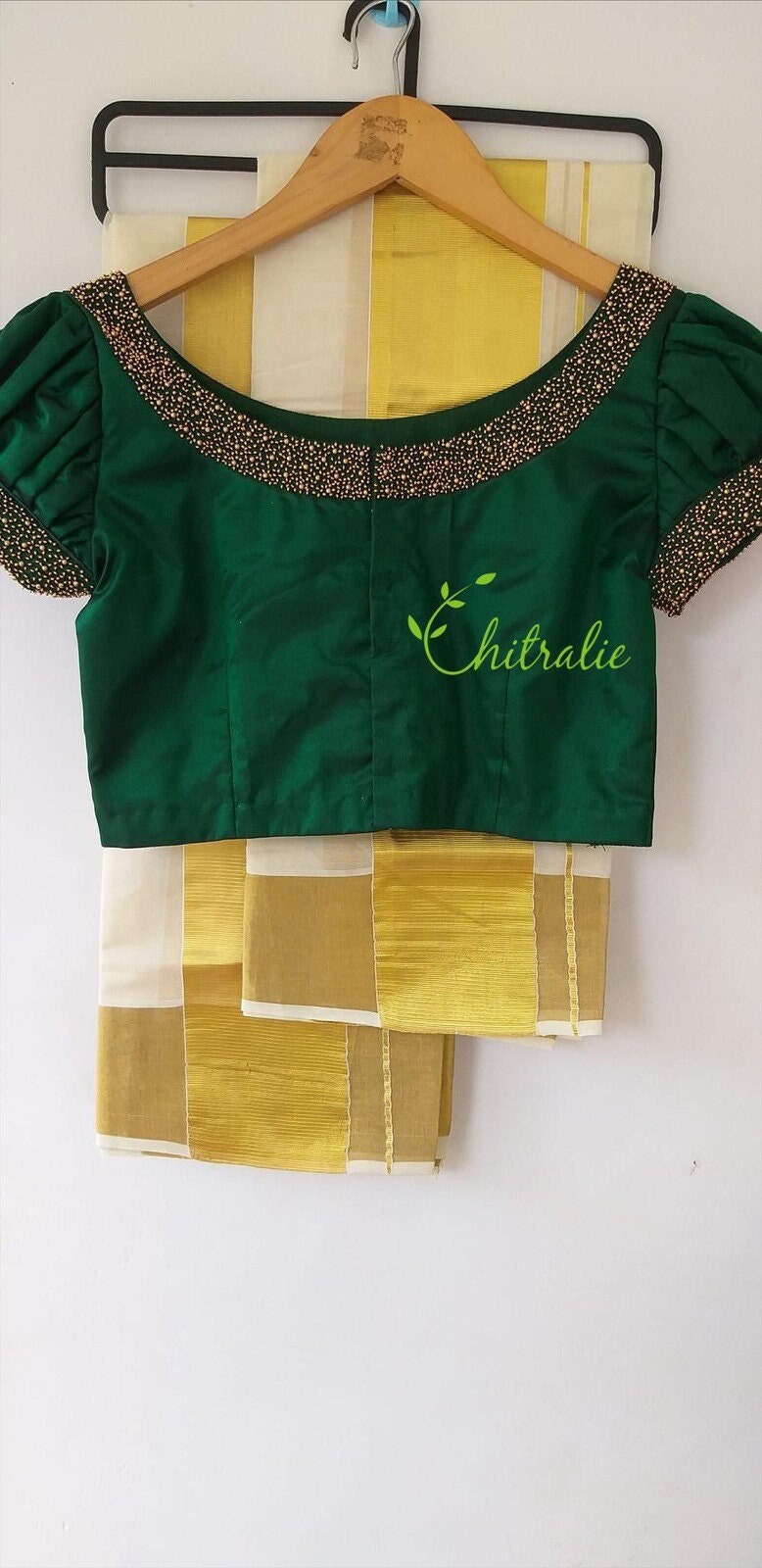 Dark Green Traditional Silk Saree Blouse With Beaded Boat Etsy Finland